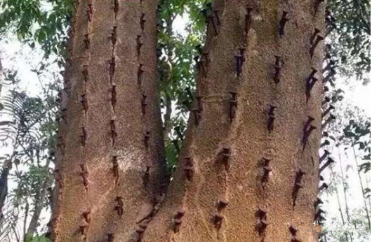 用砍傷法讓沉香樹快速結(jié)香的方法,是最常用的一種人工造香方法??硞ㄐ枰x擇6-8年以上胸徑10厘米以上的沉香樹,然后,在距離地面1.5米的地方,順砍數(shù)刀,刀與刀之間的距離約30-40厘米左右,傷口深約3-4厘米左右。